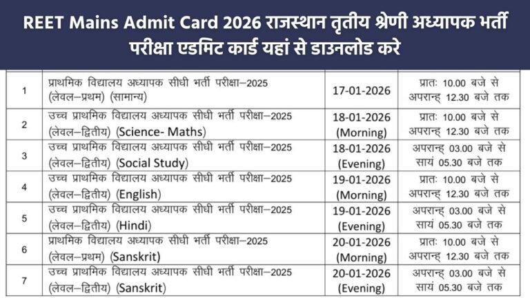REET Mains Admit Card 2026: राजस्थान कर्मचारी चयन बोर्ड की ओर से आयोजित की जा रही राजस्थान तृतीय श्रेणी अध्यापक …